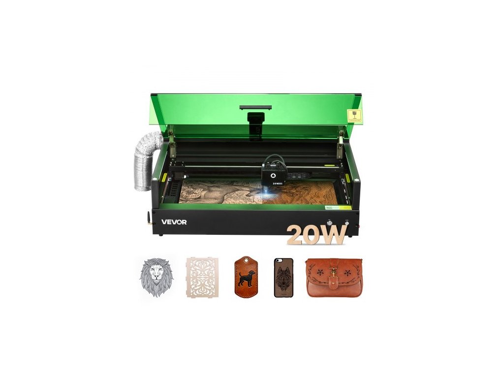 Laserový gravírovací a řezací stroj VEVOR, 20 W, laserový gravírovací a řezací stroj s krytou kamerou, laserová řezačka, 36 000 mm/min, pracovní plocha 500 x 320 mm, pro dřevo, kůži, sklo, papír, některé kovy, třída 1