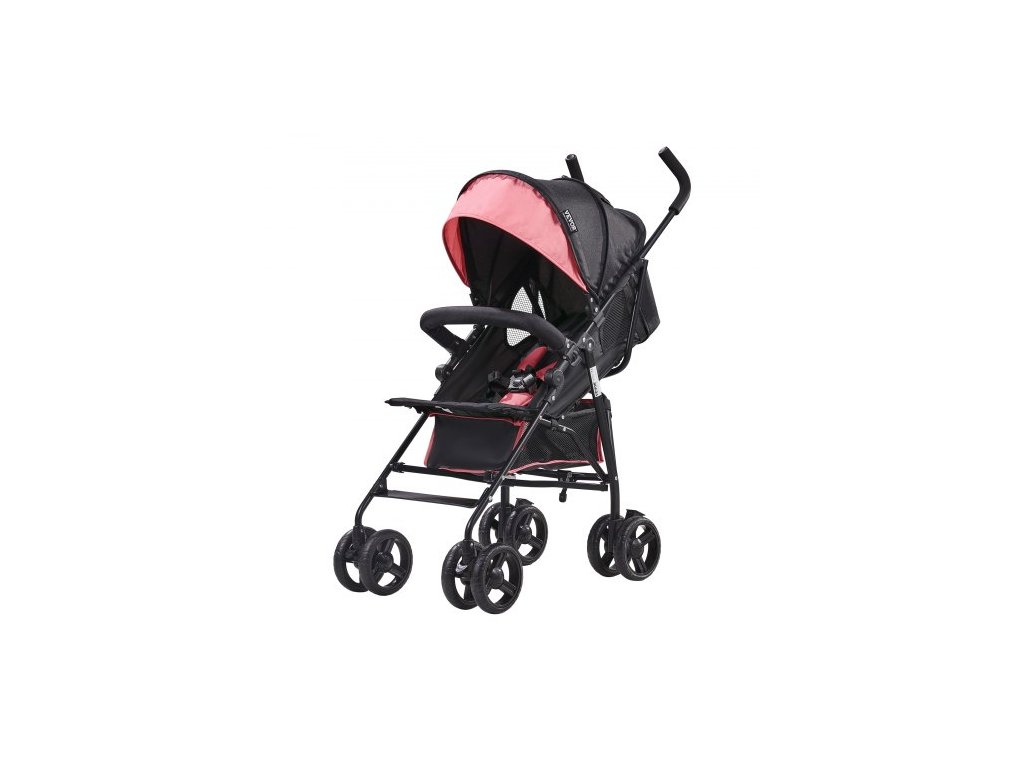 Lehký kočárek VEVOR, kompaktní a snadno skládací stříška s více polohami, rám z uhlíkové oceli, velký úložný koš, dětský kočárek s deštníkem na cesty a další, černý/růžovýSnadné skládání