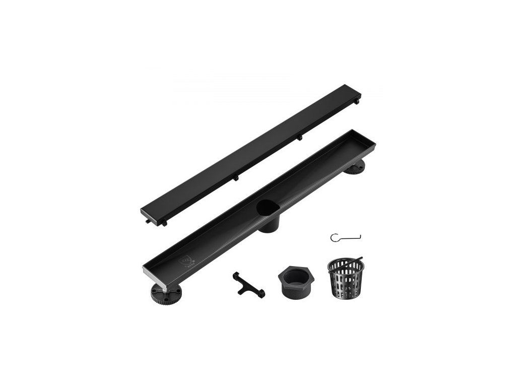 Lineární sprchový odtok VEVOR 610 mm s odsazením a krytem do dlaždic, obdélníkový sprchový odtok z kartáčované nerezové oceli 304, elegantní lineární odtok s vlasovým sítkem, černýDokonalý zážitek z odvodnění