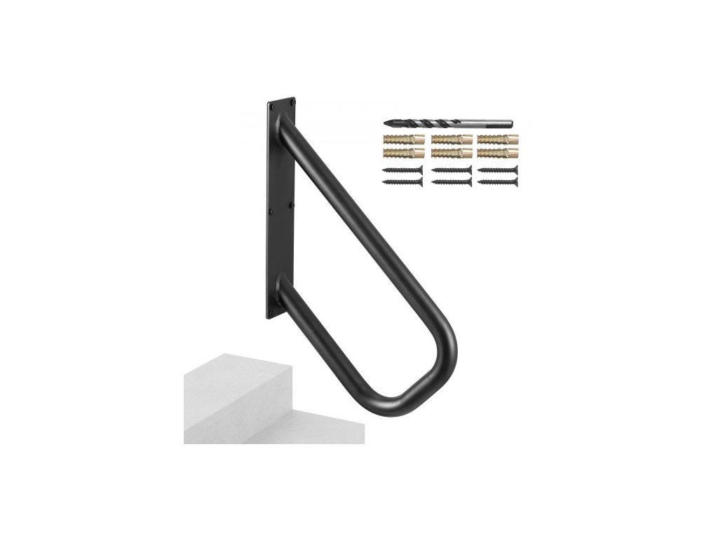 Madla VEVOR pro venkovní schody, délka 18,9" a 1,3" pro montáž na stěnu, bezpečnostní zábradlí z trubky pro 1-2 schody, madlo na schody s matně černou povrchovou úpravou, pro zahradu, dvůr a garáž a pro seniory, těhotné ženy, osoby se zdravotním postiženímOdolné madlo