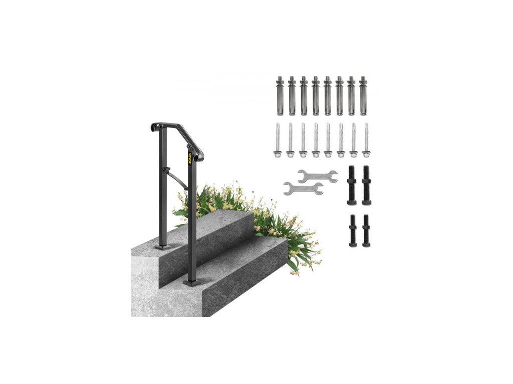 Madla VEVOR pro venkovní schody, pasují na 1 nebo 2 schody, zábradlí z kovaného železa Arch#1, flexibilní zábradlí verandy, černá přechodová madla pro betonové nebo dřevěné schodyVhodné pro 1 až 2 schody