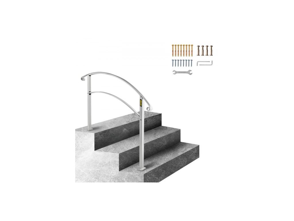 Madla VEVOR pro venkovní schody, pro 1 nebo 3 schody, zábradlí z bílého kovaného železa, flexibilní madlo na verandu, přechodové madlo pro betonové nebo dřevěné schodyFit 3 kroky