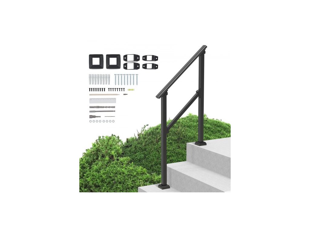 Madla VEVOR pro venkovní schody, Sada madel pro 2-3 schody, Přechodové zábradlí z uhlíkové oceli s instalační sadou, Schodišťové zábradlí pro seniory, Betonové schody a verandy a terasy, Černá čtvercová trubka