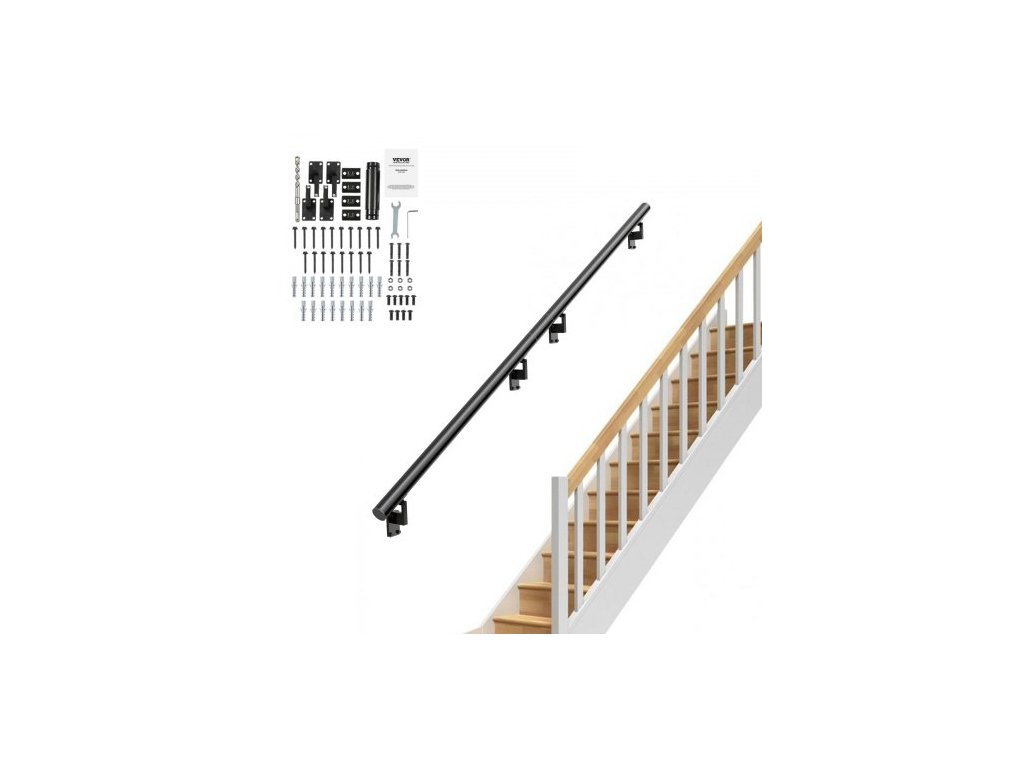Madlo VEVOR pro schody, 3,6 m, nástěnné madlo pro vnitřní schody, zesílené madlo z hliníkové slitiny s instalační sadou, nosnost 200 kg, zábradlí pro venkovní schodyNosnost 440 liber