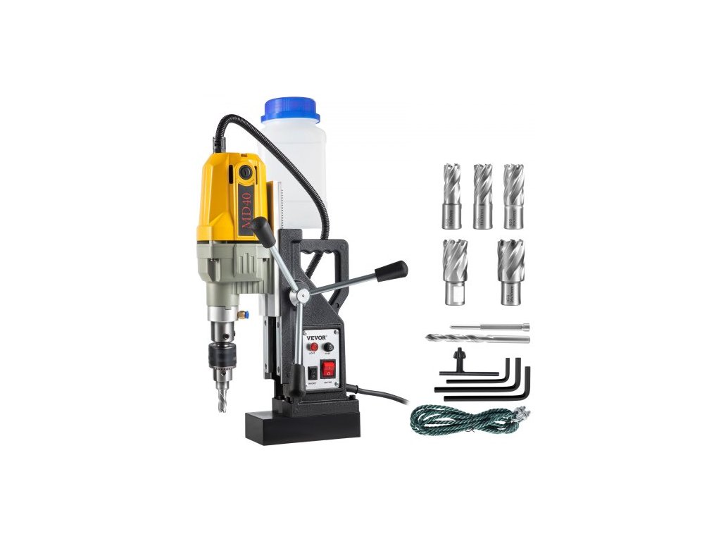 Magnetická vrtačka VEVOR, 1100W 1,57" vrtací průměr, 2697lbf/12000N Přenosná elektrická vrtačka na magnety se 7 bity, vrtačka s maximální rychlostí 580 ot./min. pro vylepšení jakéhokoli povrchu a domácnostiVynikající výkon