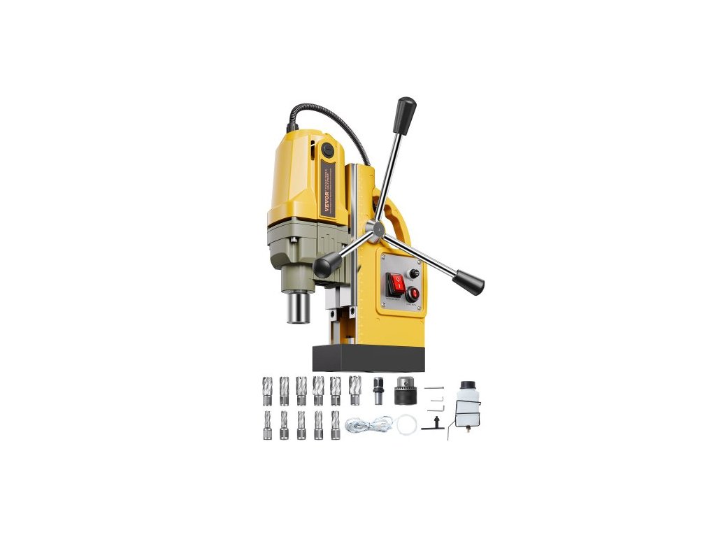 Magnetická vrtačka VEVOR, motor 1400 W, průměr vrtání 1,6 palce, přenosná elektrická magnetická vrtačka 2810 lbf, s 11 vrtacími korunkami, otáčky 800 ot./min, vrtačka na kovové povrchy, pro domácí kutilyVýkonný výkon