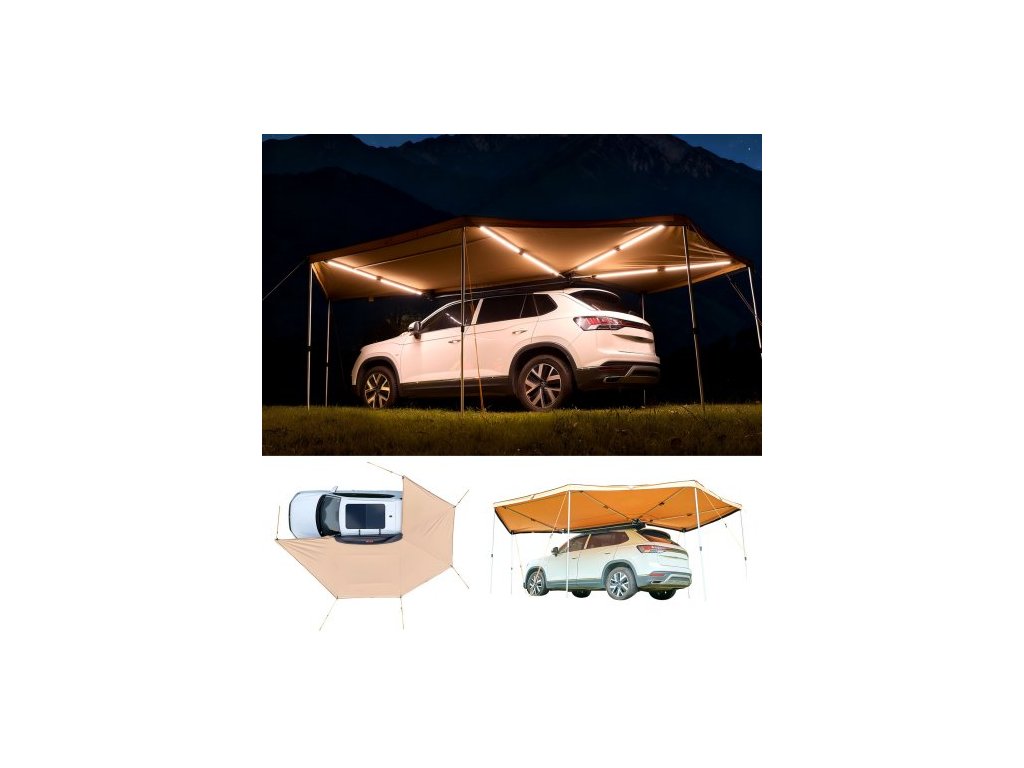 Markýza VEVOR 270 stupňů s vestavěnými LED světly, 10,9 ㎡ markýza na straně řidiče, vodotěsná markýza s UV50+ zářením, volně stojící markýza pro auto do každého počasí, přístřešek pro kempování, SUV, nákladní automobilyExtra velké pokrytí