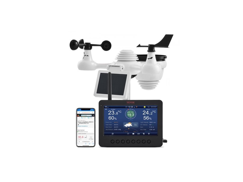 Meteorologická stanice VEVOR 7 v 1 s Wi-Fi a 186mm (7") TFT displejem, bezdrátový venkovní senzor