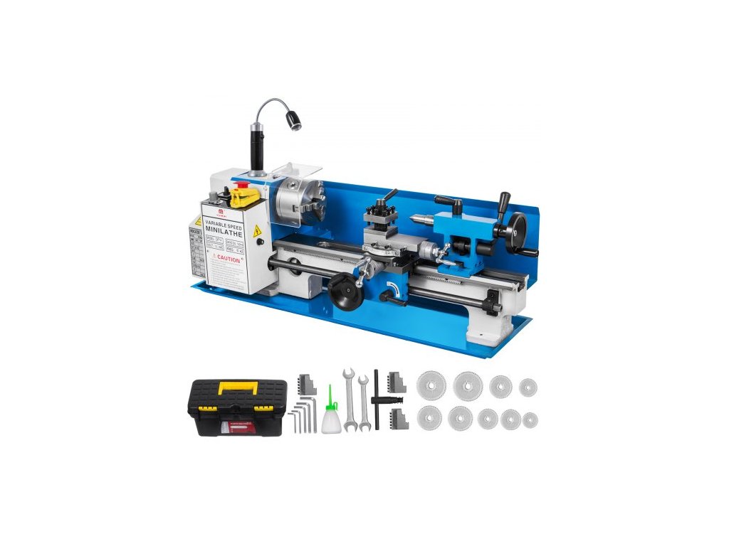 Mini kovový soustruh VEVOR 550W s proměnnou rychlostí, kovový soustruh 50 až 2500 ot./min, přesný mini stolní soustruh 7x14 palců pro mini přesné zpracování dílů, zpracování vzorků, modelováníTěžký stroj