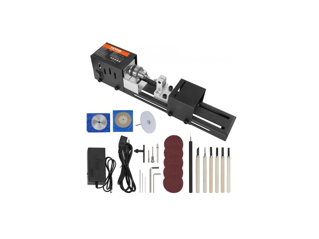 Mini soustruh VEVOR, 7 cm x 16 cm, 24VDC 96W mini soustruh na dřevo, příslušenství pro frézky, 7 rychlostí 4220/5300/5650/6350/6660/7050/8450 ot./min, pro kutily, rotační vrtačku na dřevo