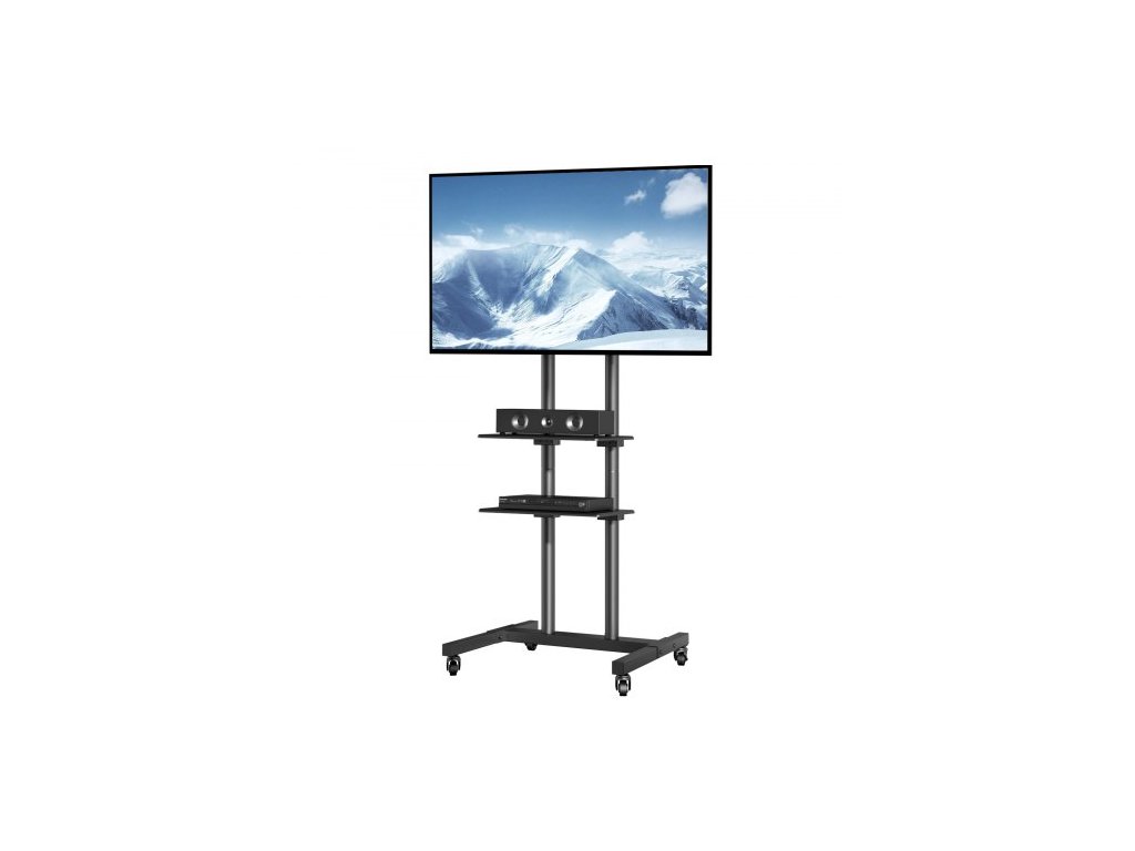 Mobilní televizní stojan VEVOR, mobilní televizní vozík pro televizory s úhlopříčkou 32 až 70 palců, výškově nastavitelný přenosný televizní stojan s kolečky, dvojitý stojan pro audiovizuální zařízení, kolečkový televizní stojan s držákem do ložnice, obývacího pokojeBezpečnost a stabilita