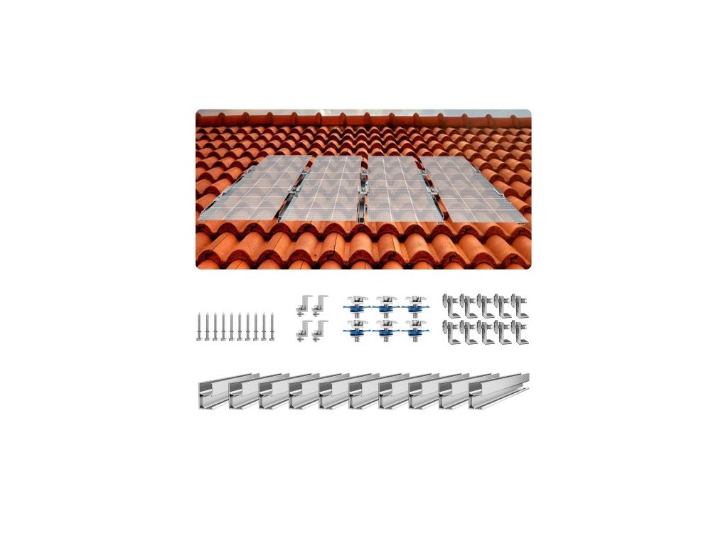 Montážní konzole pro solární panely VEVOR, sada pro montáž solárního panelu s mini lištami 10 x 4", 4 koncovými svorkami a 6 mírnými svorkami, konzole pro montáž solárních panelů na kovovou střechu, betonovou střechu, dřevěnou střechu a taškovou střechuKompletní montážní sada