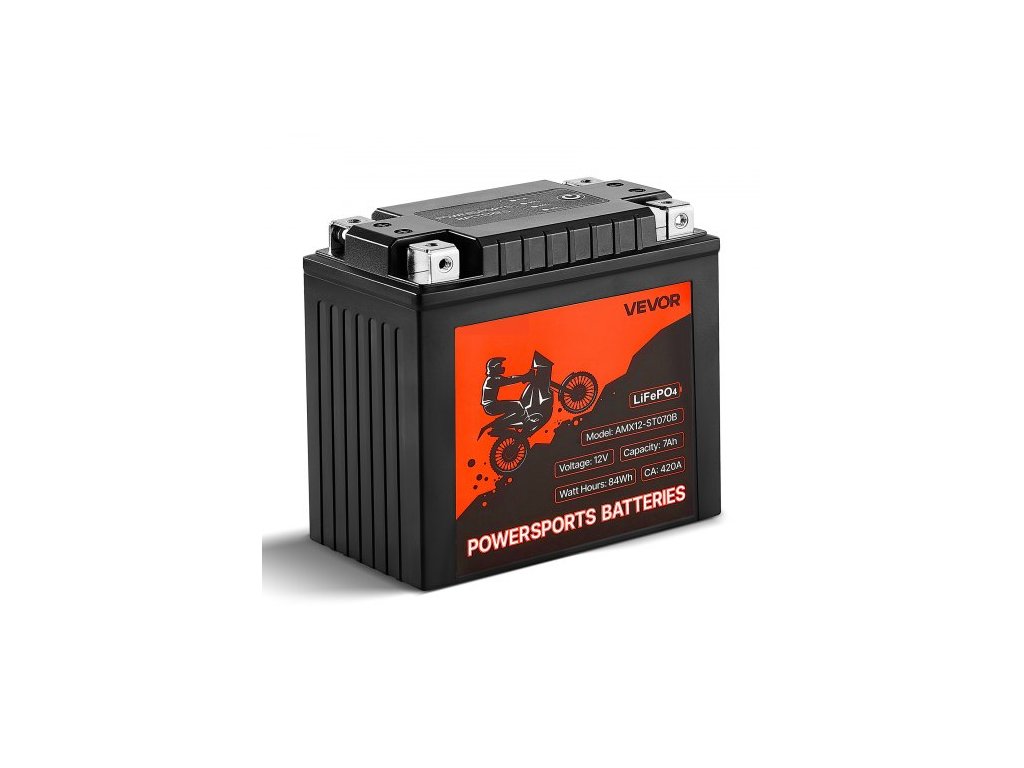 Motocyklová baterie VEVOR, 12 V 7 Ah, LiFePO4 lithiová přednabíjecí baterie Powersports, bezúdržbová a vysoce výkonná, kompatibilní se čtyřkolkami, motocykly, vodními skútry, skútry, UTV a dalšímiVýkonný výkon a dlouhá výdrž baterie
