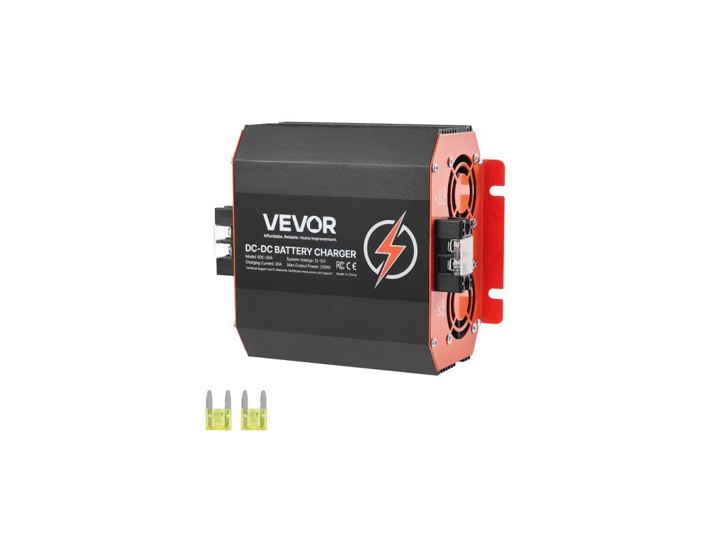 Nabíječka baterií VEVOR 12V 20A DC-DC, 250W, integrovaná nabíječka pro olověné, lithiové, AGM, gelové a zaplavené baterie, inteligentní vícestupňové nabíjení, pro obytné vozy, užitková vozidla, lodě a jachty
