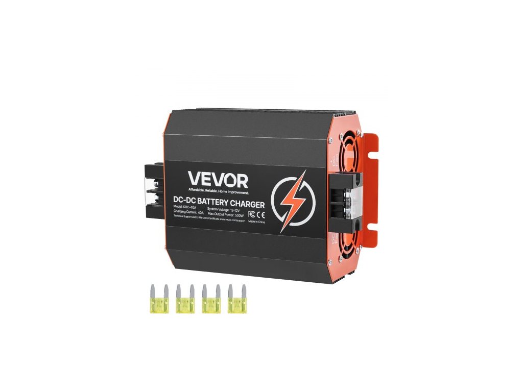 Nabíječka baterií VEVOR 12V 40A DC-DC, 500W, integrovaná nabíječka pro olověné, lithiové, AGM, gelové a zaplavené baterie, inteligentní vícestupňové nabíjení, pro obytné vozy, užitková vozidla, lodě a jachty