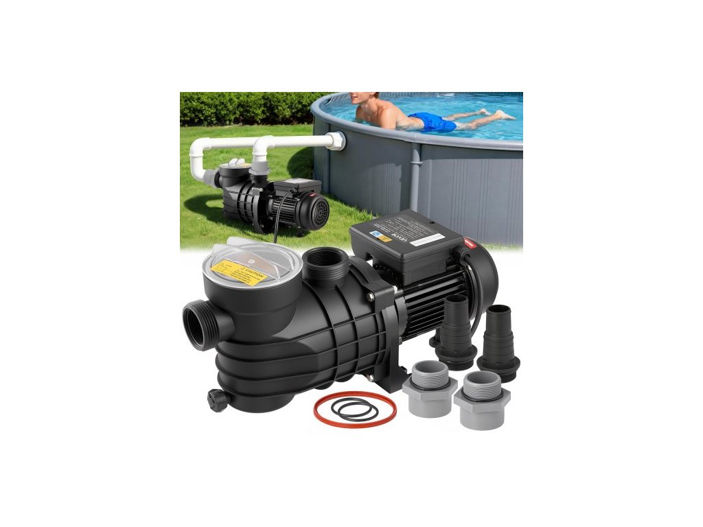 Nadzemní bazénové čerpadlo VEVOR, 250 W, maximální průtok 11 700 l/h, jednorychlostní bazénové čerpadlo, AC 220–240 V, 2850 ot./min, maximální výtlak 8 m, s filtračním košem a víkem, pro nadzemní bazény, vířivky a spaVestavěný filtrační koš