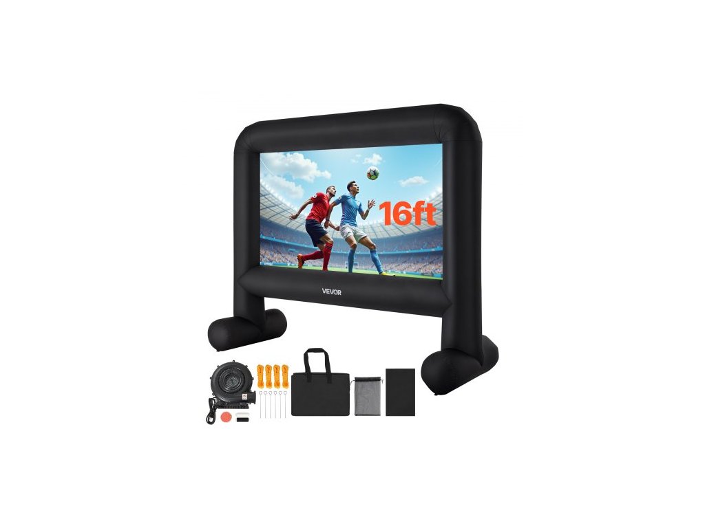 Nafukovací filmové plátno VEVOR 16 stop, omyvatelné nafukovací projekční plátno z 600D s přenosným úložným vakem, snadno nastavitelné promítání filmů 16:9 pro venkovní zahradu, domácí kino, tematickou párty, zábavu u bazénu