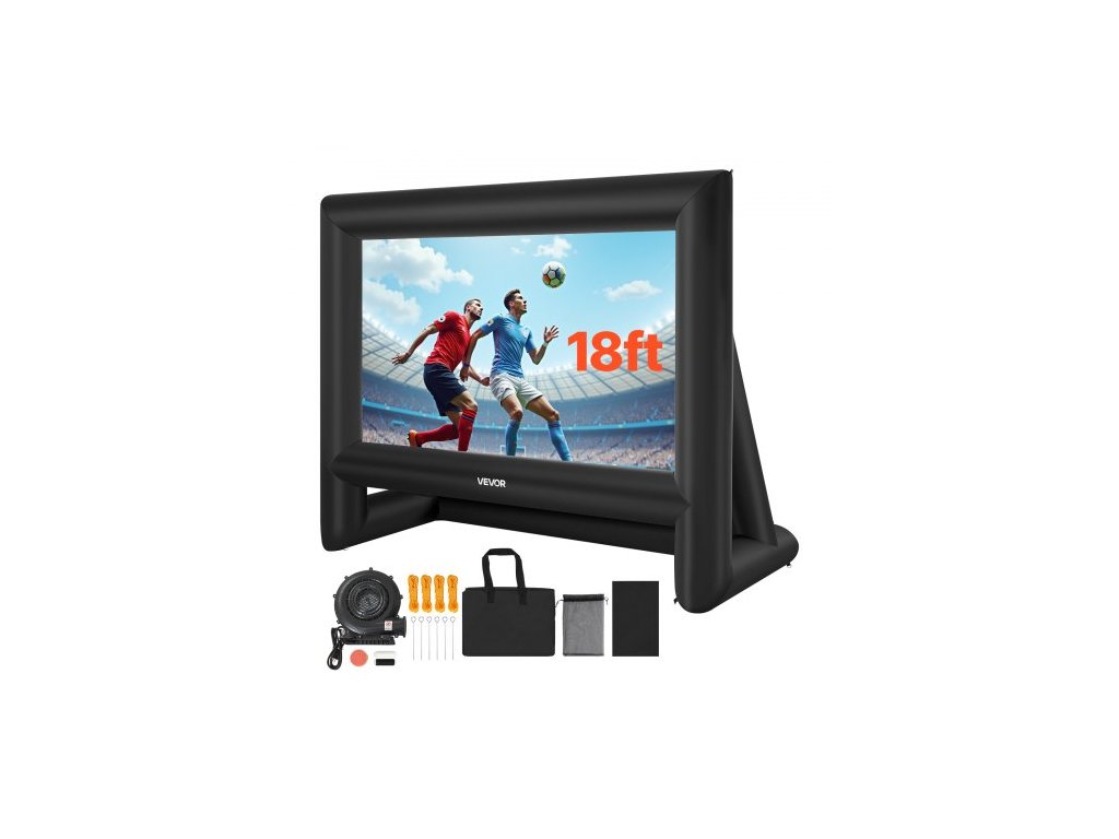 Nafukovací filmové plátno VEVOR 18 stop, omyvatelné nafukovací projekční plátno z 600D s přenosným úložným vakem, snadno nastavitelné promítání filmů 16:9 pro venkovní zahradu, domácí kino, tematickou párty, zábavu u bazénuMateriál bez krčení