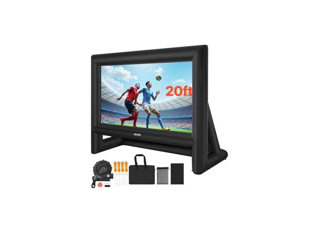 Nafukovací filmové plátno VEVOR 6 m, omyvatelné nafukovací projekční plátno z 600D s přenosným úložným vakem, snadno nastavitelné promítání filmů 16:9 pro venkovní zahradu, domácí kino, tematickou párty, zábavu u bazénu