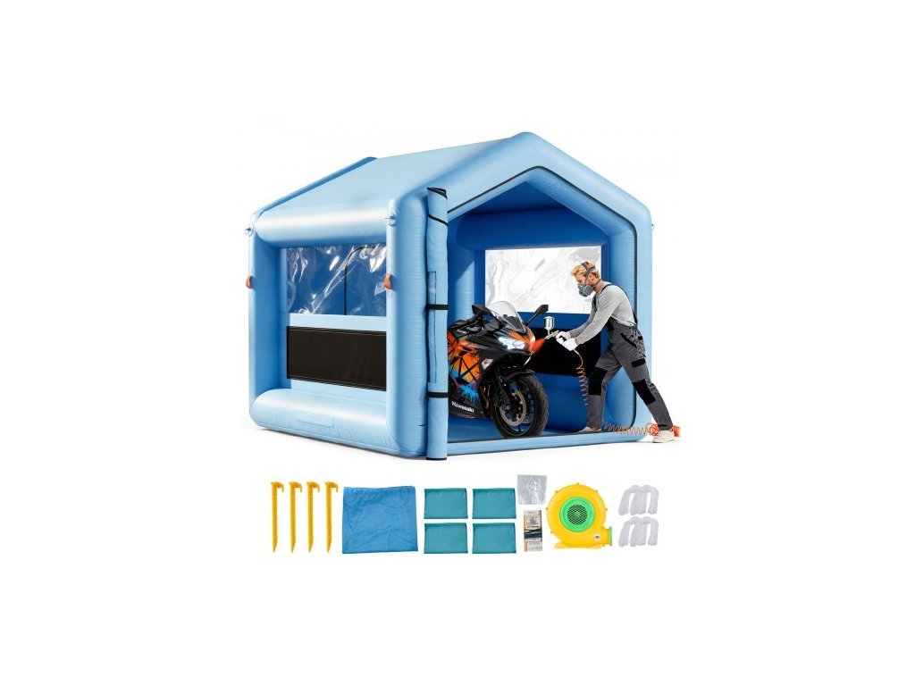 Nafukovací lakovací kabina VEVOR, 3 x 2,5 x 2,5 m, nafukovací stříkací kabina s výkonným ventilátorem 550 W a systémem vzduchového filtru, trojúhelníková střecha, pro lakování plechů jízdních kol, motocyklů a automobilůZesílená rukojeť