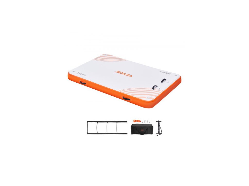 Nafukovací plovoucí dok VEVOR, nafukovací dokovací plošina 8 x 5 stop, protiskluzová plovoucí rohož na vodu s přenosnou taškou a odnímatelným žebříkem, plovoucí plošina, ostrovní raft pro bazén, pláž, oceánDvojčinné ruční čerpadlo