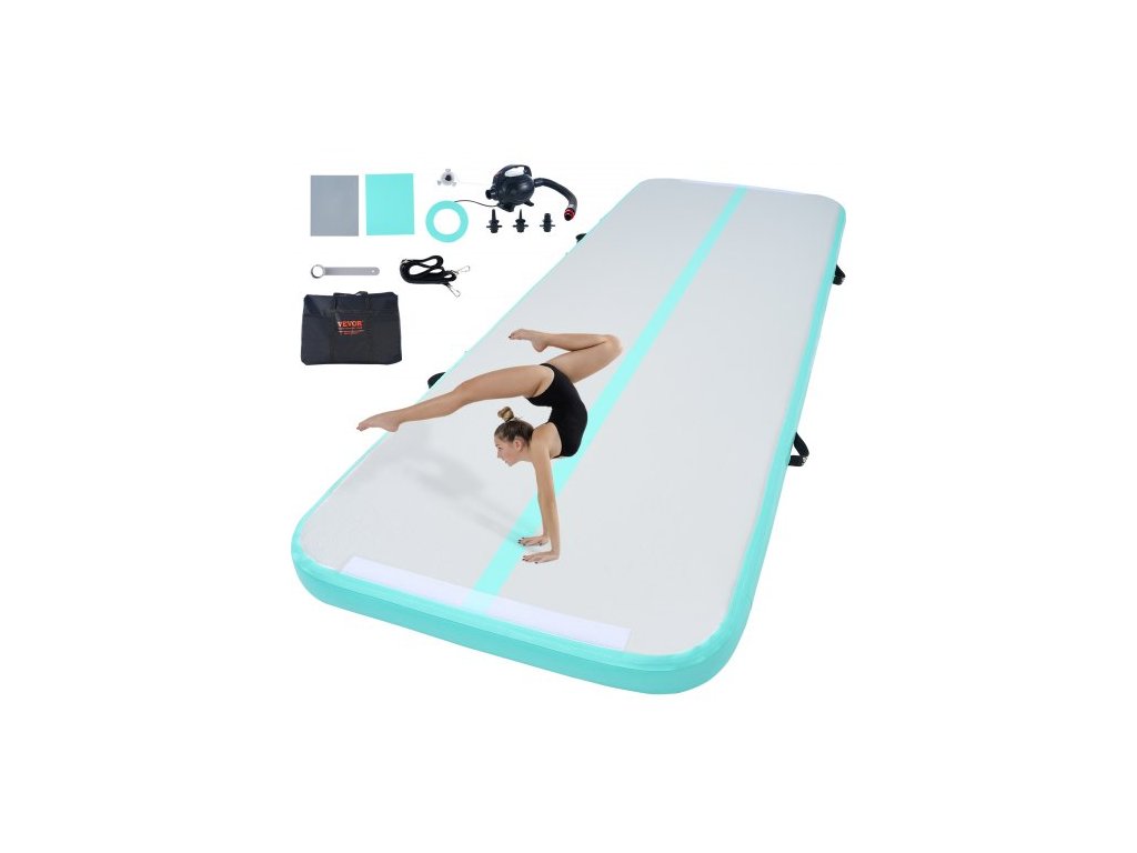Nafukovací podložka na gymnastiku VEVOR, tloušťka 4 palce, oválná dráha s elektrickým čerpadlem, tréninkové podložky pro domácí použití/posilovnu/jógu/roztleskávání/pláž/park/vodu, 10 stop, mátově zelená