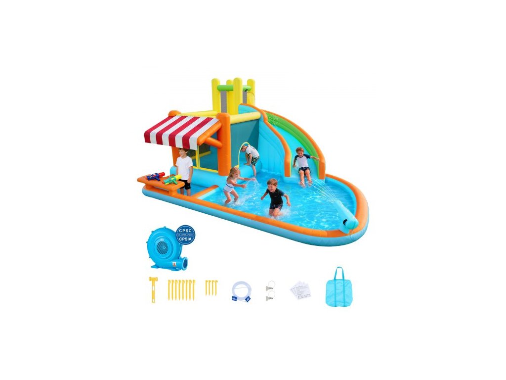 Nafukovací skákací hrací deska VEVOR, 14,9 x 12,8 x 7,8 stop, vodní skluzavka, skákací hrad se skákacími hrady, vysoká skluzavka, brouzdaliště a hrací stánek, pro 3 až 4 děti ve věku 3 až 8 let