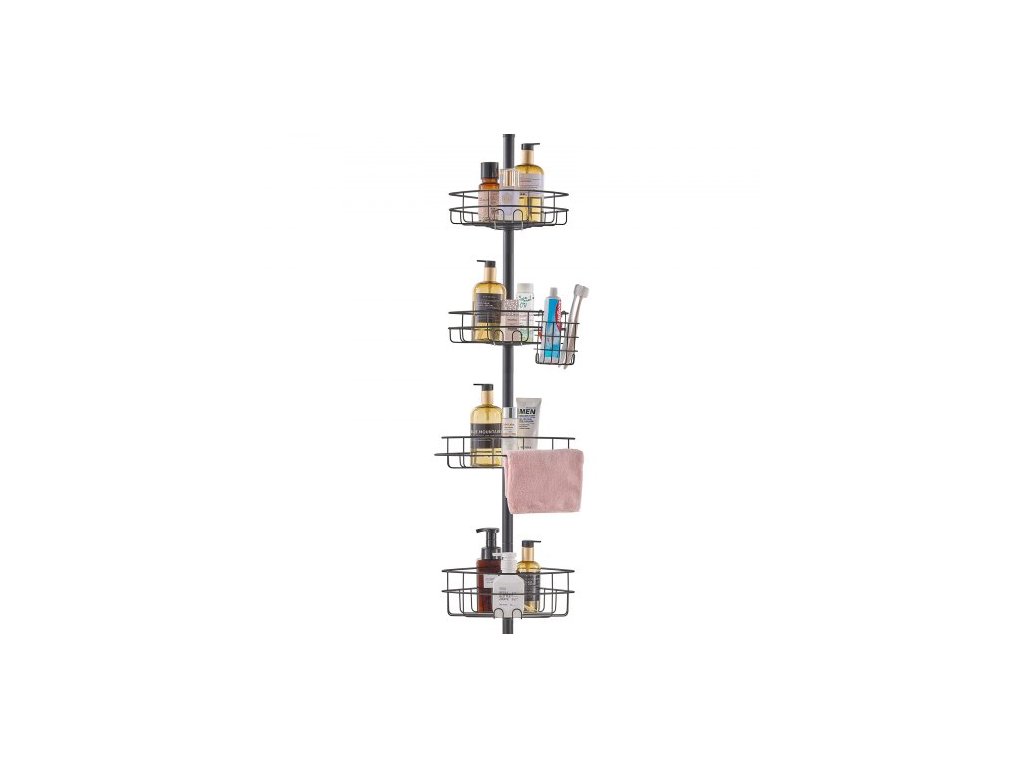 Napínací tyč do sprchového rohu VEVOR, výška 107 až 284 cm, multifunkční napínací tyč do sprchy se silným nosným táckem, odolná proti korozi, snadno instalovatelná, vhodná do koupelny a toaletyÚhledné a organizované