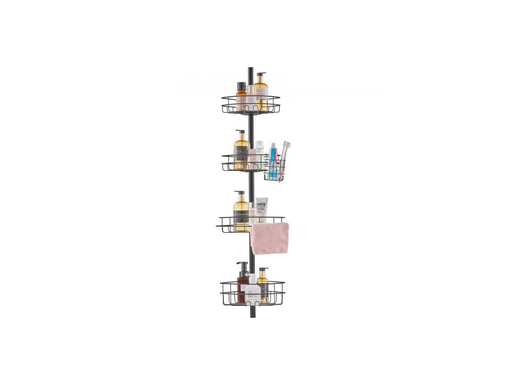 Napínací tyč do sprchového rohu VEVOR, výška 56" až 114", multifunkční sprchová napínací tyč se silným nosným táckem, odolná proti korozi, snadno instalovatelná, vhodná do koupelny a toaletyÚhledné a organizované