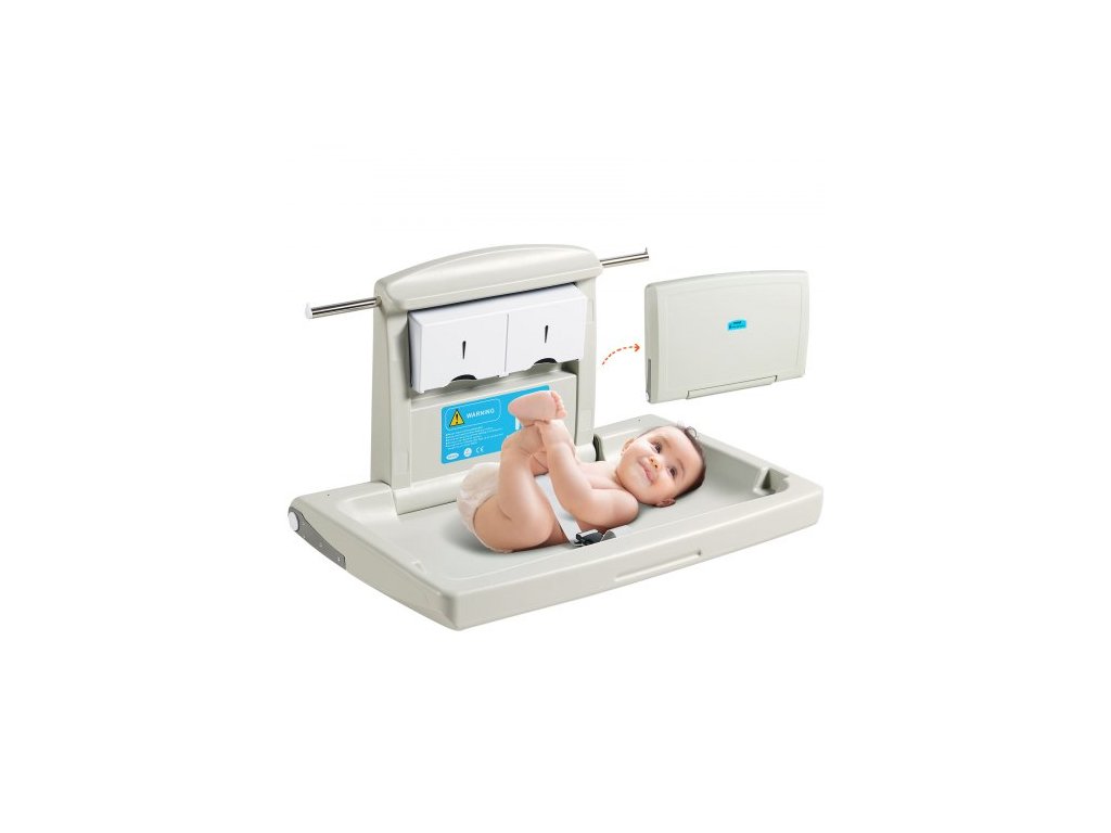 Nástěnný přebalovací pult VEVOR, horizontální skládací přebalovací pult s bezpečnostními popruhy a závěsnými tyčemi, použití v komerčních koupelnách, denních centrech pro novorozence a kojence