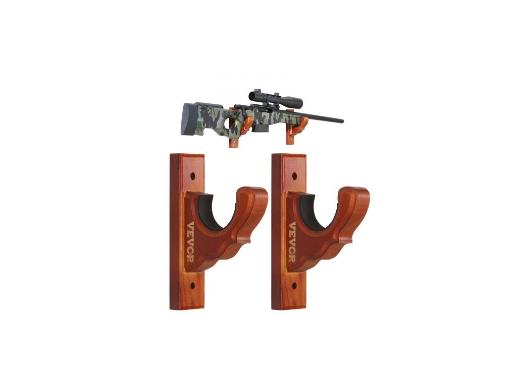 Nástěnný stojan na zbraně VEVOR, horizontální stojan na zbraně a háky na brokovnice, stojan na jednu zbraň na zeď, držák na zbraň s měkkým polstrováním pojme pušky a brokovnice do 22,7 kgRobustní konstrukce z masivního dřeva