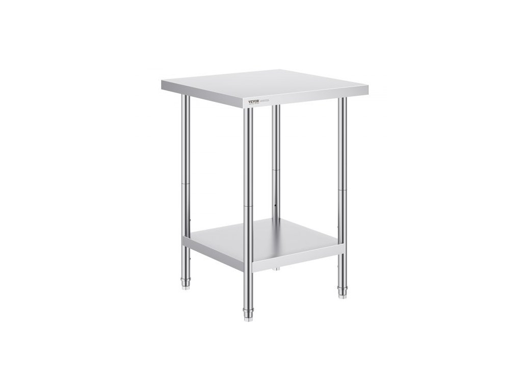 Nerezový přípravný stůl VEVOR, 24 x 24 x 34 palců, odolný kovový pracovní stůl se 3 nastavitelnými výškovými úrovněmi, komerční pracovní stanice do kuchyně, garáže, restaurace, zahrady