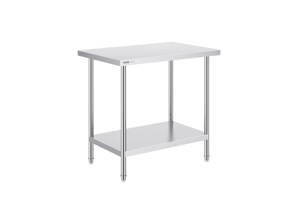 Nerezový přípravný stůl VEVOR, 24 x 36 x 34 palců, odolný kovový pracovní stůl se 3 nastavitelnými výškovými úrovněmi, komerční pracovní stanice do kuchyně, garáže, restaurace, zahrady