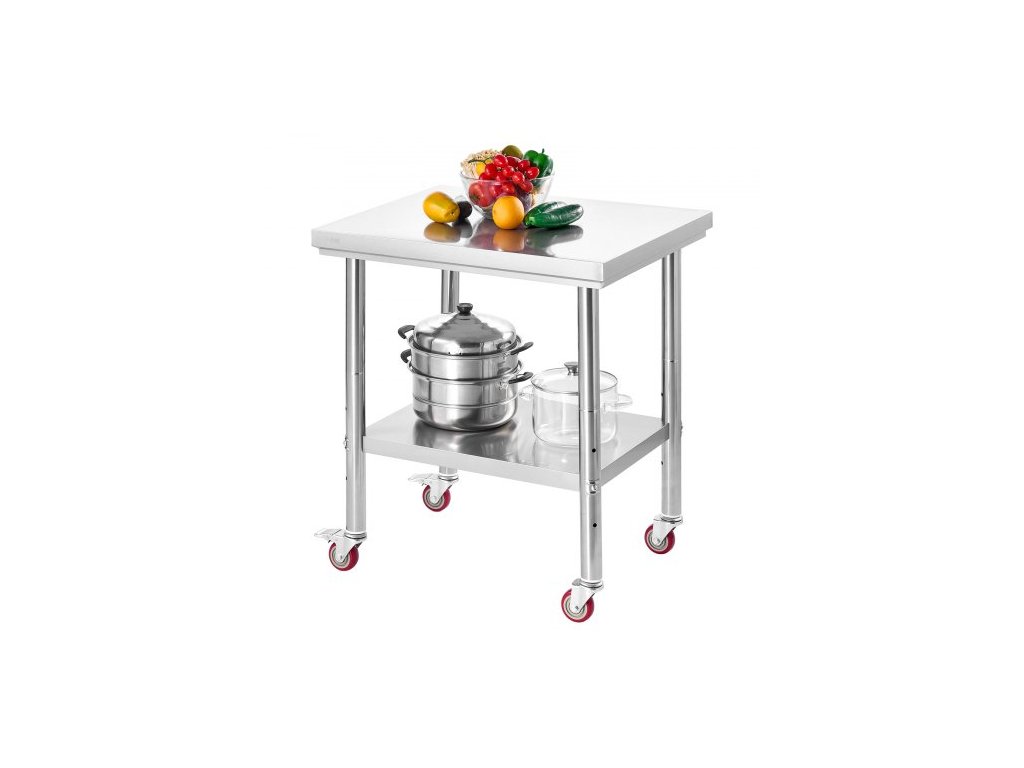 Nerezový stůl VEVOR, pracovní stůl na přípravu jídla 60 x 76 cm s kolečky, kuchyňský stůl s nastavitelnou policí pro komerční kuchyně, restaurace, hotely a garáže, venkovní použití