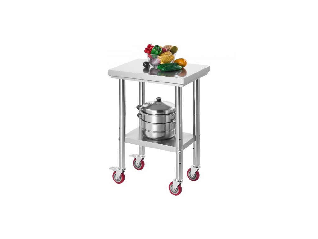 Nerezový stůl VEVOR, pracovní stůl na přípravu jídla 61 x 45 cm s kolečky, kuchyňský stůl s nastavitelnou spodní policí pro komerční kuchyně, restaurace, hotely a garáže, venkovní použitíStylový pracovní stůl