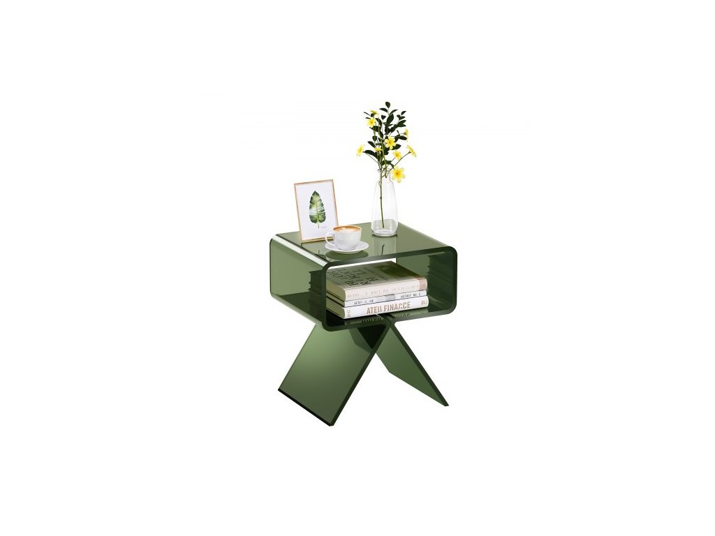 Noční stolek VEVOR z akrylu, moderní průhledný noční stolek s úložnou policí, průhledný malý odkládací stolek do obývacího pokoje, ložnice, bytové dekorace, montáž není nutná, 30 x 39,1 x 43 cm (zelený)Ztluštěná akrylová deska stolu