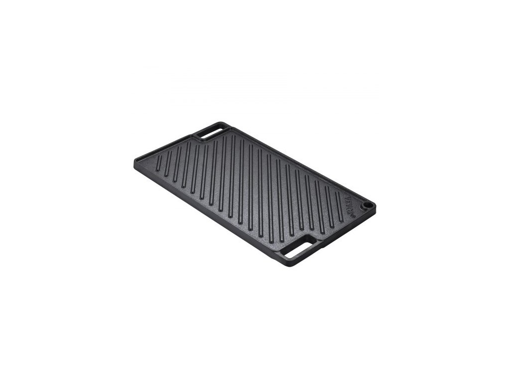 Oboustranný gril/plotna VEVOR, předem ochucená litinová plotýnka 9,7"x16,7", obdélníková pánev s dvojitým hořákem, nepřilnavá rodinná pánev s rukojeťmi, plochá horní deska pro grilování, plynový gril, černáZtluštěná litinová grilovací pánev