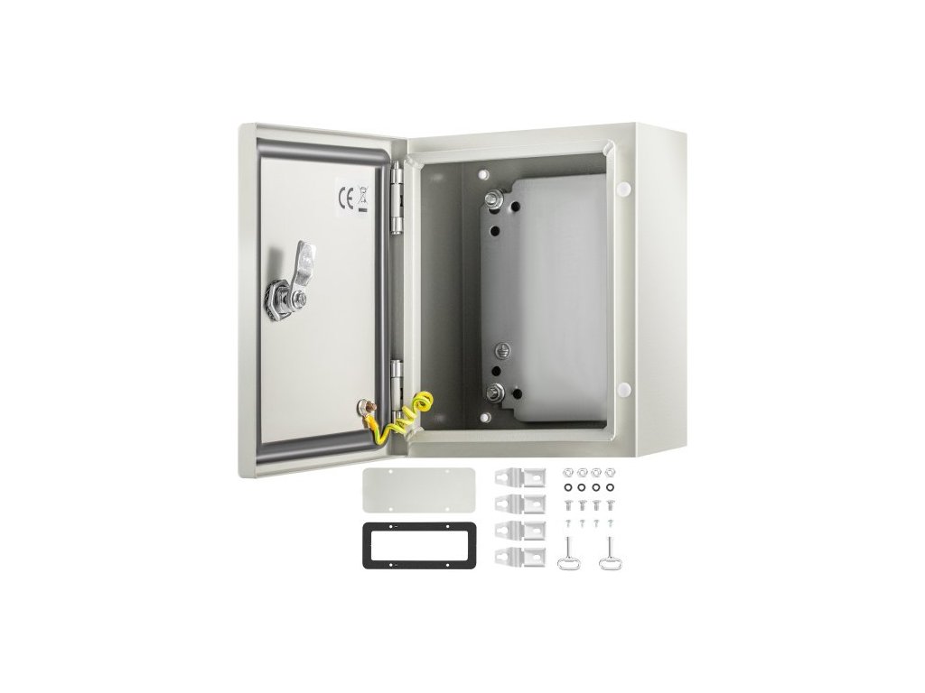 Ocelová krabička VEVOR NEMA, 25x20x15 cm, ocelová elektrická krabice NEMA 4X, IP66, vodotěsná a prachotěsná, venkovní/vnitřní elektrická rozvodná krabice, s montážní deskou