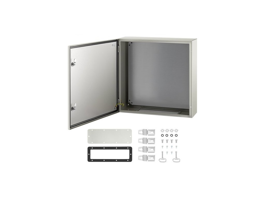 Ocelová krabička VEVOR NEMA, 60x60x20 cm, ocelová elektrická krabice NEMA 4X, IP66, vodotěsná a prachotěsná, venkovní/vnitřní elektrická rozvodná krabice, s montážní deskou