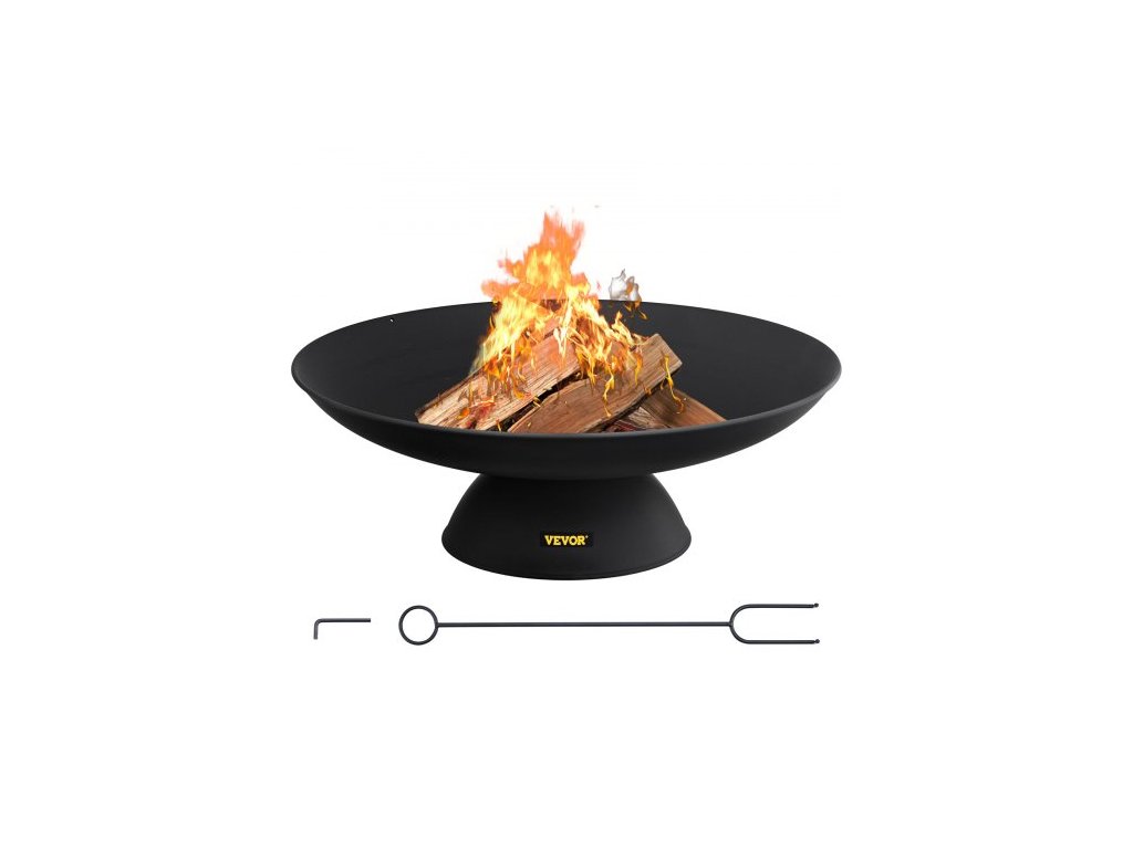 Ohniště VEVOR, kulaté litinové ohniště o hloubce 76 cm, na dřevo pro venkovní terasy, zahrady a kempování, se stabilní základnou ve tvaru ohniště a tyčkou na palivové dřevo, černé30palcové ohniště