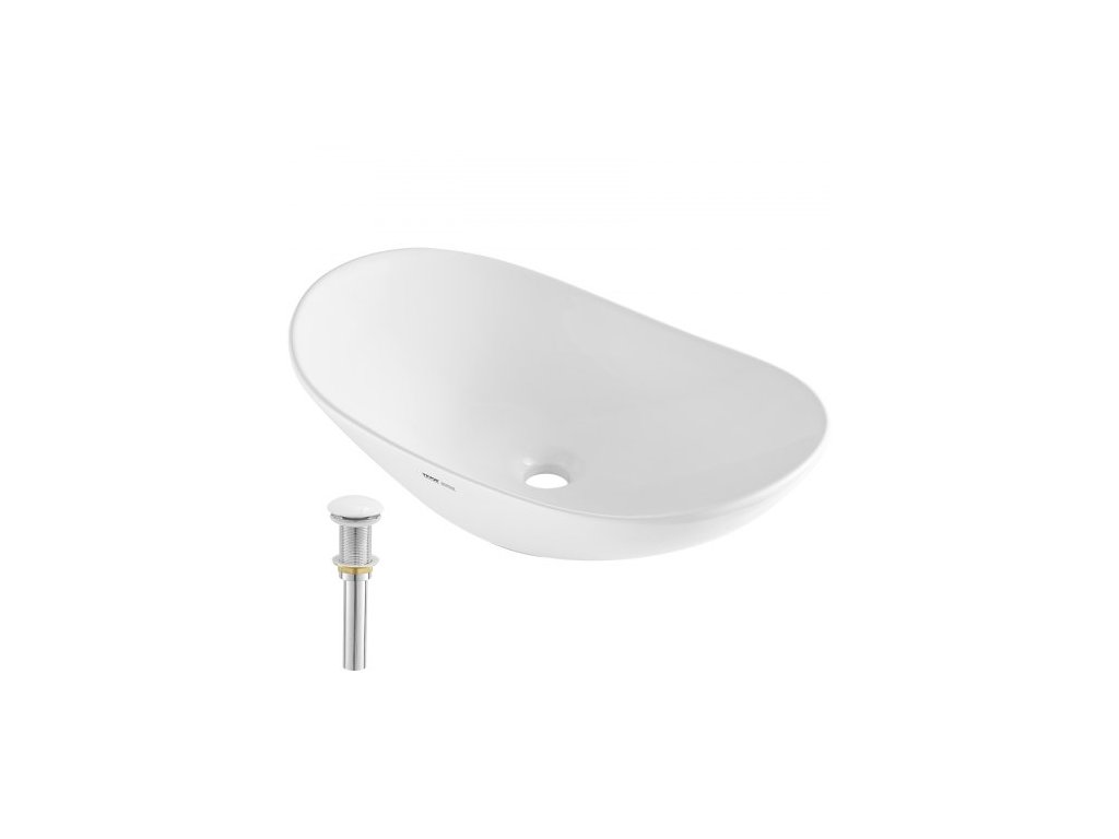 Oválné umyvadlo VEVOR, koupelnové umyvadlo na desku 23,3" x 14,2", pracovní deska, bílé keramické koupelnové umyvadlo nad desku, moderní umyvadlo, dobře zabalené pro koupelnu, hotel, toaletu, karavanKeramický materiál