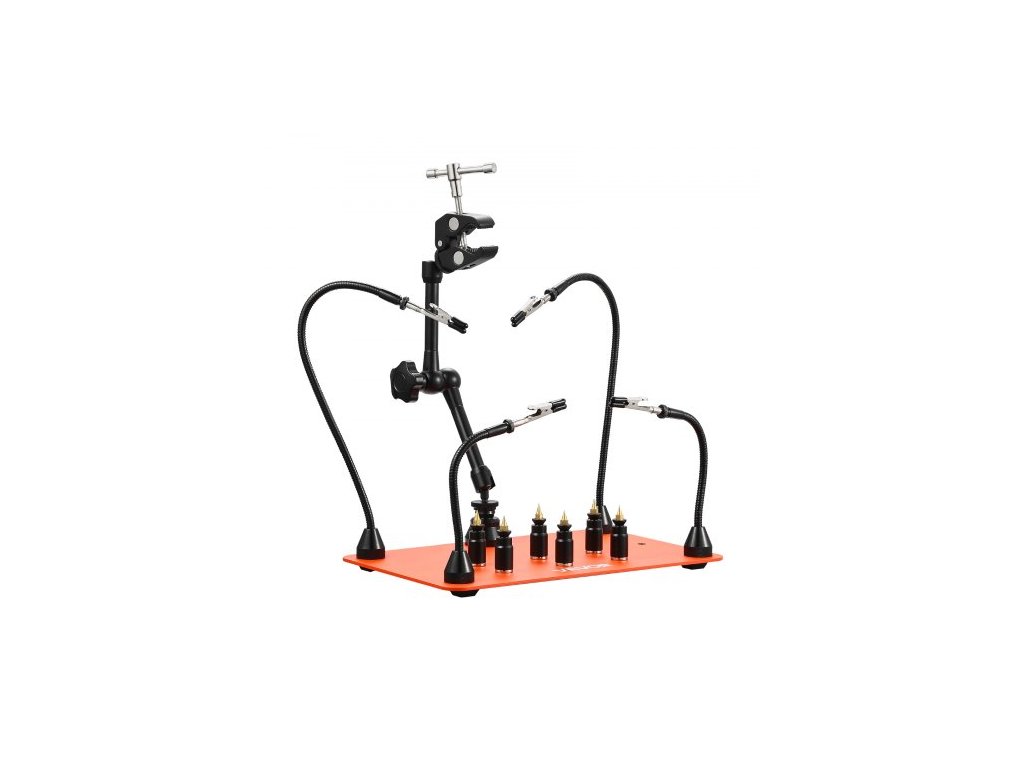 Pájecí stanice VEVOR Magnetická pomocná ruka, 4 flexibilní ramena, nástroj třetí ruky, s 6 držáky na plošné spoje a 360° držákem horkovzdušné pistole, pájecí pomocník s vysokou základnou pro elektronické opravy a řemeslaBezproblémová přesnost