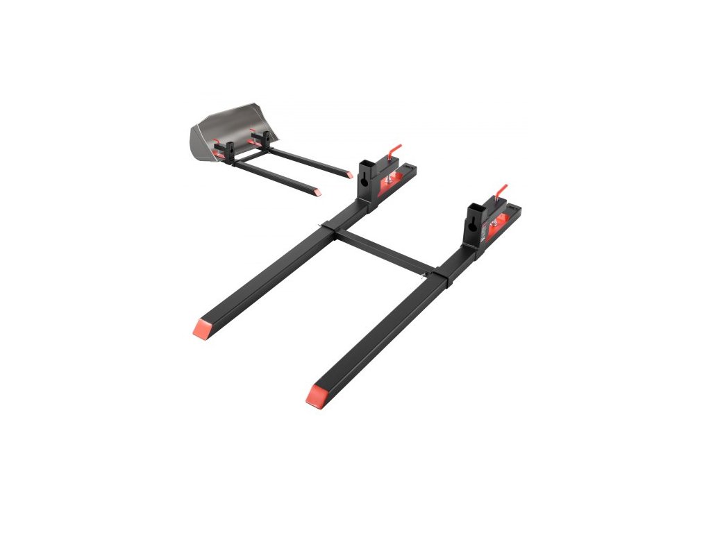 Paletové vidle VEVOR, upínací zařízení na paletové vidle 907 kg, celková délka 149 cm, vysoce odolné traktorové vidle s nastavitelnou stabilizační tyčí pro traktorové příslušenství, nakladač a smykem řízený nakladač, černé