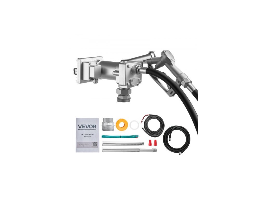 Palivové přečerpávací čerpadlo VEVOR, 12V DC 57 l/min, sada litinové přečerpávací pumpy na naftu, s ruční uzavírací tryskou, výtlačnou hadicí, ochranou proti přehřátí, 1/3 HP v nevýbušném provedení, pro benzín, naftu, petrolejBezpečné připojení NPT