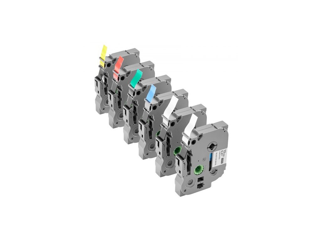 Čip: Bez čipové pásky, Rozměry produktu: 88 x 67 x 16 mm, Možnosti barev: Průhledná s černým textem, bílá s černým textem, červená s černým textem, modrá s černým textem, žlutá s černým textem, zelená s černým textem,Číslo modelu položky: Kompatibilní s Brother TZe-131/TZe-231/TZe-431/TZe-531/TZe-631/TZe-731, Počet barevných pásek: 6, Šířka pásky: 12 mm, Typy pásek: Plastové štítky (PET) a uhlíková páska na bázi pryskyřice, Čistá hmotnost: 0,59 libry / 0,27 kg, Délka pásky: 8 m