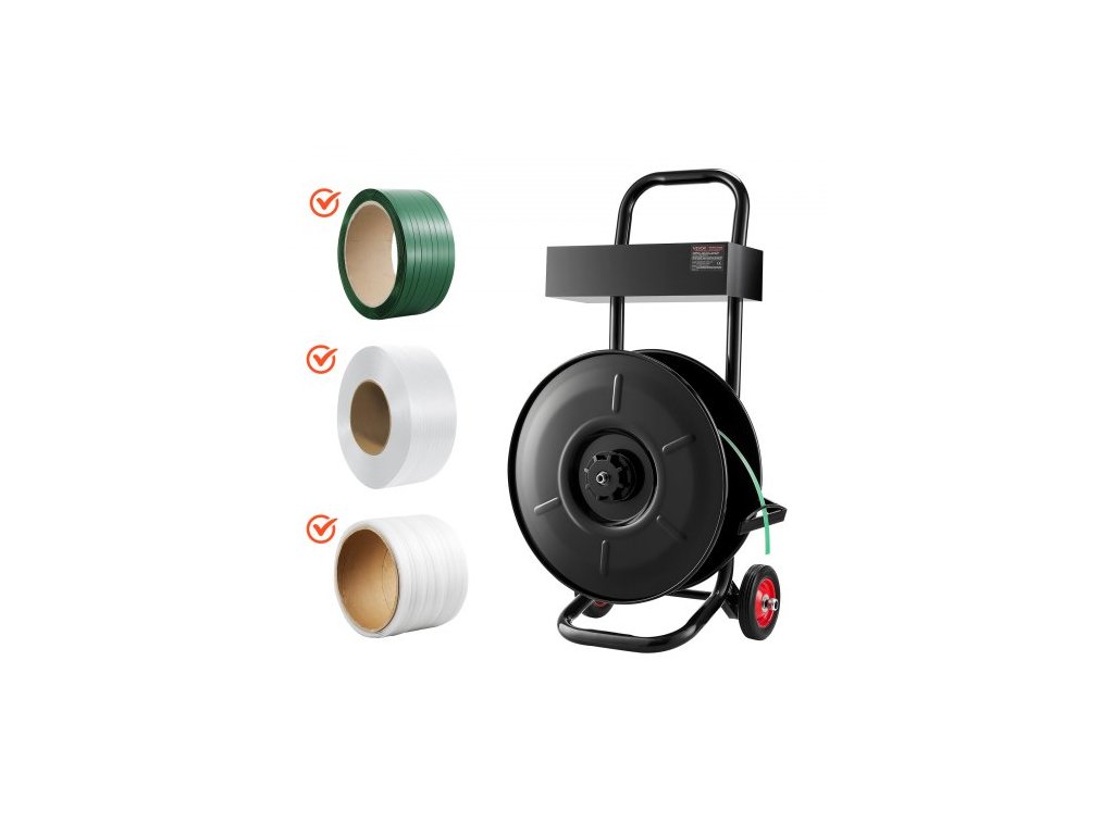 Páskovací vozík VEVOR, vhodný pro PET / PP / polyesterové pásky v cívkách s velikostí jádra 20,3 cm, odolný páskovací dávkovač vybavený upgradovaným brzdovým systémem, vestavěný prostorný zásobník na nářadíRám z vysoce pevné uhlíkové oceli