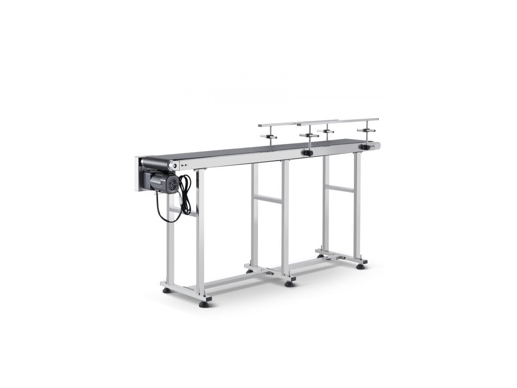 Pásový dopravník VEVOR, dopravníkový stůl 71 x 7,8 palce, vysoce odolný motorizovaný pásový dopravník z nerezové oceli pro aplikace inkoustového kódování, poháněný PVC pás, antistatická nastavitelná rychlost (dvojité zábradlí)Materiál průmyslové kvality