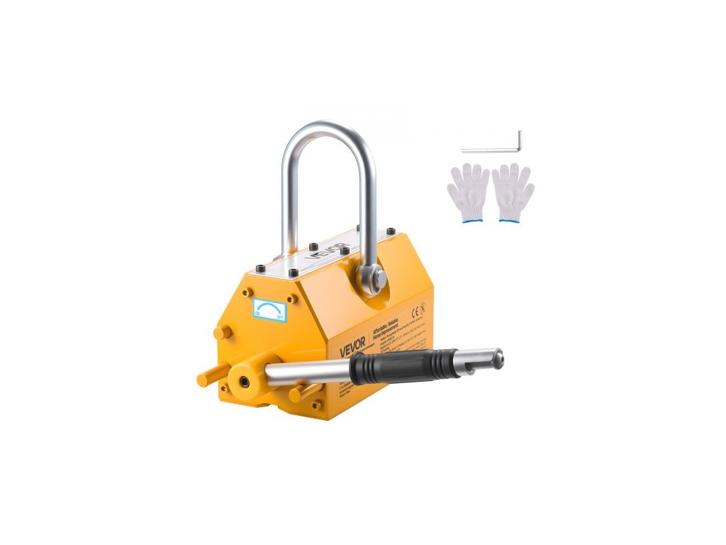 Permanentní magnetický zvedák VEVOR, tažná kapacita 1000 kg, vysoce odolný neodymový zvedací magnet N42 s uvolňovací rukojetí a ocelovým hákem, používaný v dílenských jeřábech a kladkostrojích, pro zvedací desky z oceli a prknaProtiskluzová rukojeť
