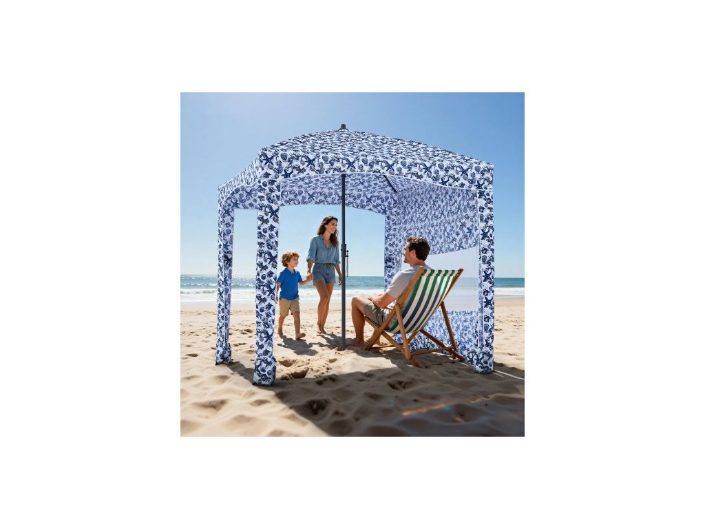 Plážová kabana VEVOR, plážová stříška 1,83 x 1,83 m s boční stěnou, ochrana UPF 50+, snadno sestavitelná kabana s kapsami na písek, velká přenosná venkovní clona, slunečník pro celou rodinu a přátele