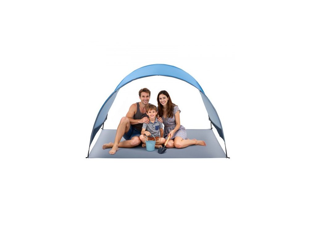 Plážový stan VEVOR, sluneční stříška pro 3 osoby, ochrana UPF 50+, přenosná sluneční stříška s přepravní taškou a kolíky do země, lehký a snadno nastavitelný plážový slunečník pro kempování, rybaření, venkovní piknik